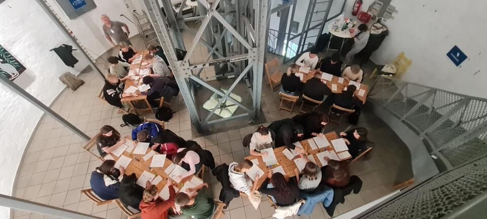 Um 08:00 Uhr trafen wir uns in einem Raum und frühstückten gemeinsam, während wir einen Einblick in die Kunst Australiens bekamen. Anschließend machten wir zu Fuß auf den Weg zum Wasserturm. Als wir ankamen wurde noch alles für den Workshop vorbereitet und wir bekamen die Möglichkeit uns umzusehen und einen ersten Eindruck von der Umgebung zu bekommen. Zu Beginn erklärte uns der australische Künstler Carlo Barresi, woher diese Kunstform stammt: Die Punktmalerei ist eine traditionelle und zugleich moderne Maltechnik der Aborigines – der australischen Ureinwohner – und verbindet oft kulturelle Geschichten mit geometrischen Mustern. Danach durften wir selbst kreativ werden: Mithilfe von Schaschlikspießen, und Heißklebepatronen, Farben und einer ruhigen Anleitung kreierten wir eigene Kunstwerke auf Leinwand. Zwischendurch erzählte Herr Barresi spannende Anekdoten und Geschichten aus seiner Heimat Australien, was den Workshop auch kulturell sehr bereichernd machte. Natürlich konnten wir uns auch die Aussicht von ganz oben im Wasserturm nicht entgehen lassen und machten ein paar Fotos als Erinnerung an einen tollen Tag.